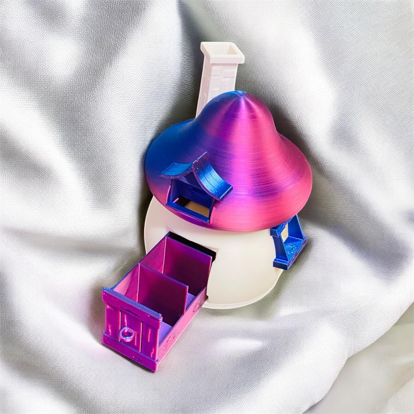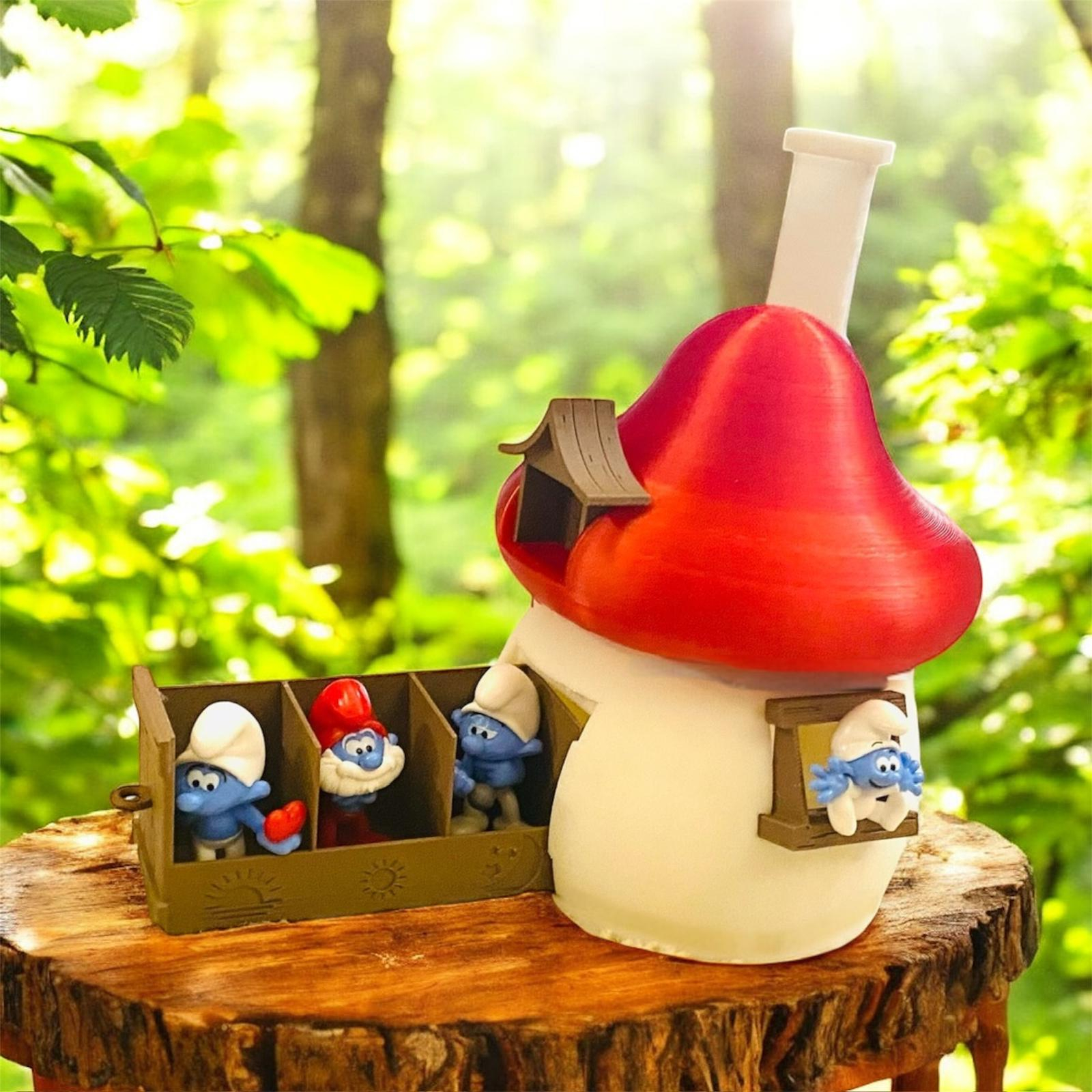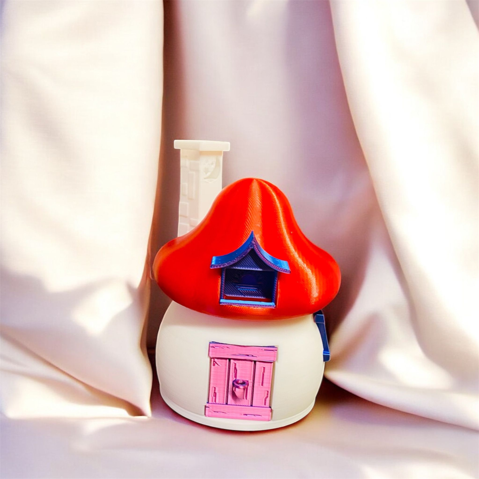 Printata 3D cu atentie la detalii, casuta in forma de ciuperca imbina perfect culorile vii cu designul jucaus al lumii strumfilor.