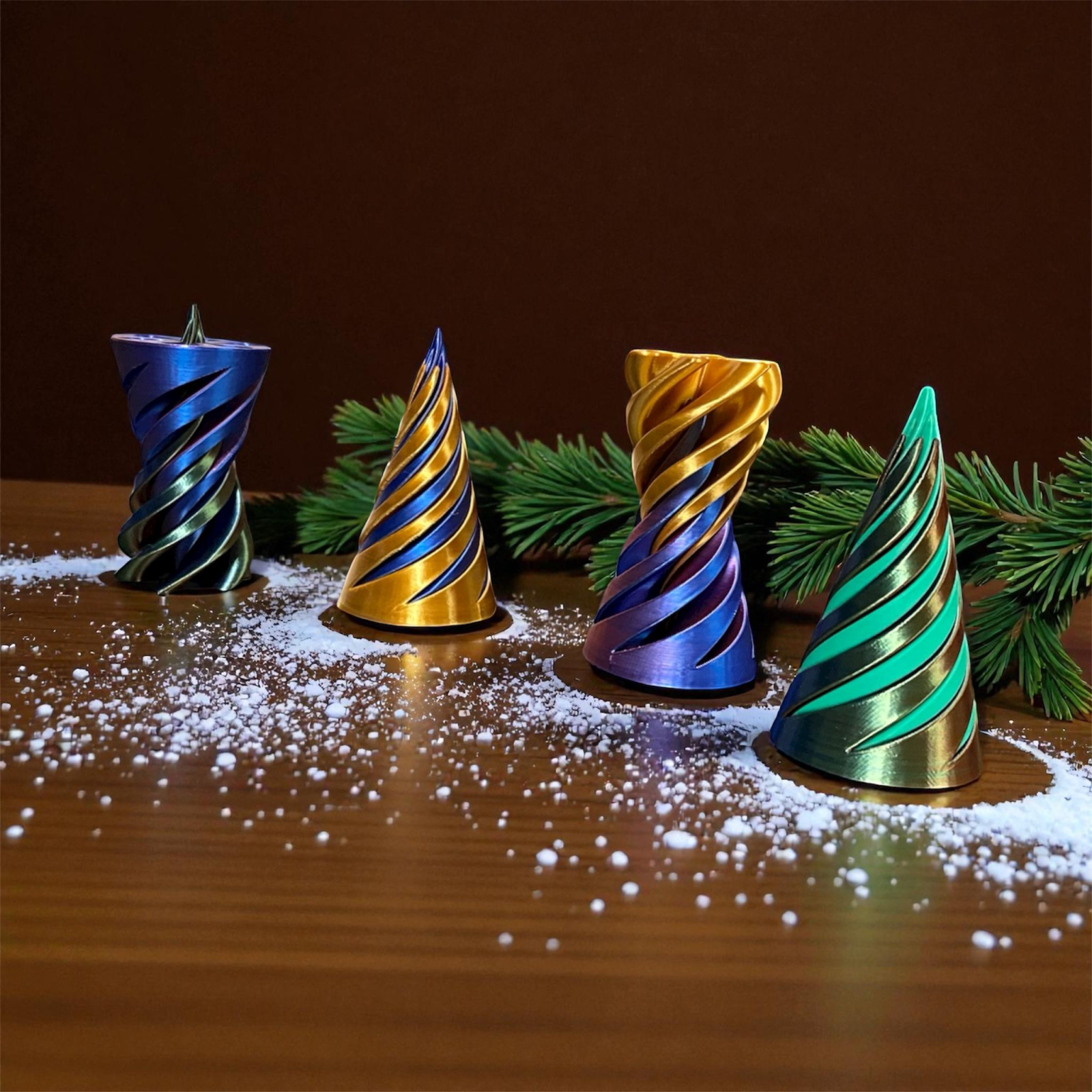 Descopera un fidget unic, inspirat din spirala magica a Craciunului! Creat prin printare 3D cu precizie si materiale premium, acest bradut are un design hipnotizant care se roteste si culiseaza lin, oferind relaxare instant. Textura satinata si combinatia de culori metalice transforma fiecare miscare intr-un spectacol vizual.