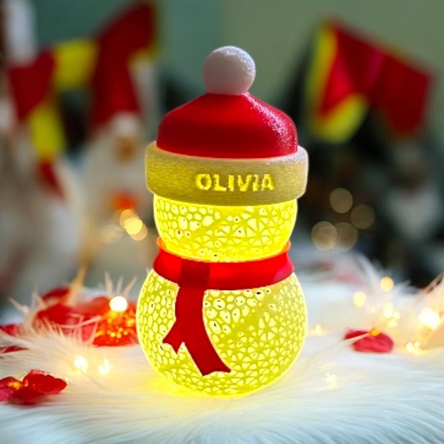 Transforma orice colt al casei intr-o poveste de Craciun cu omul de zapada luminos, printat 3D in stil lattice. Designul perforat lasa lumina sa se joace prin zeci de forme, creand o atmosfera calda si feerica. Caciula rosie, fularul elegant si detaliile fine ii dau un farmec aparte, iar optional poti adauga un nume personalizat pentru un cadou cu adevarat special.