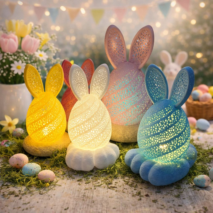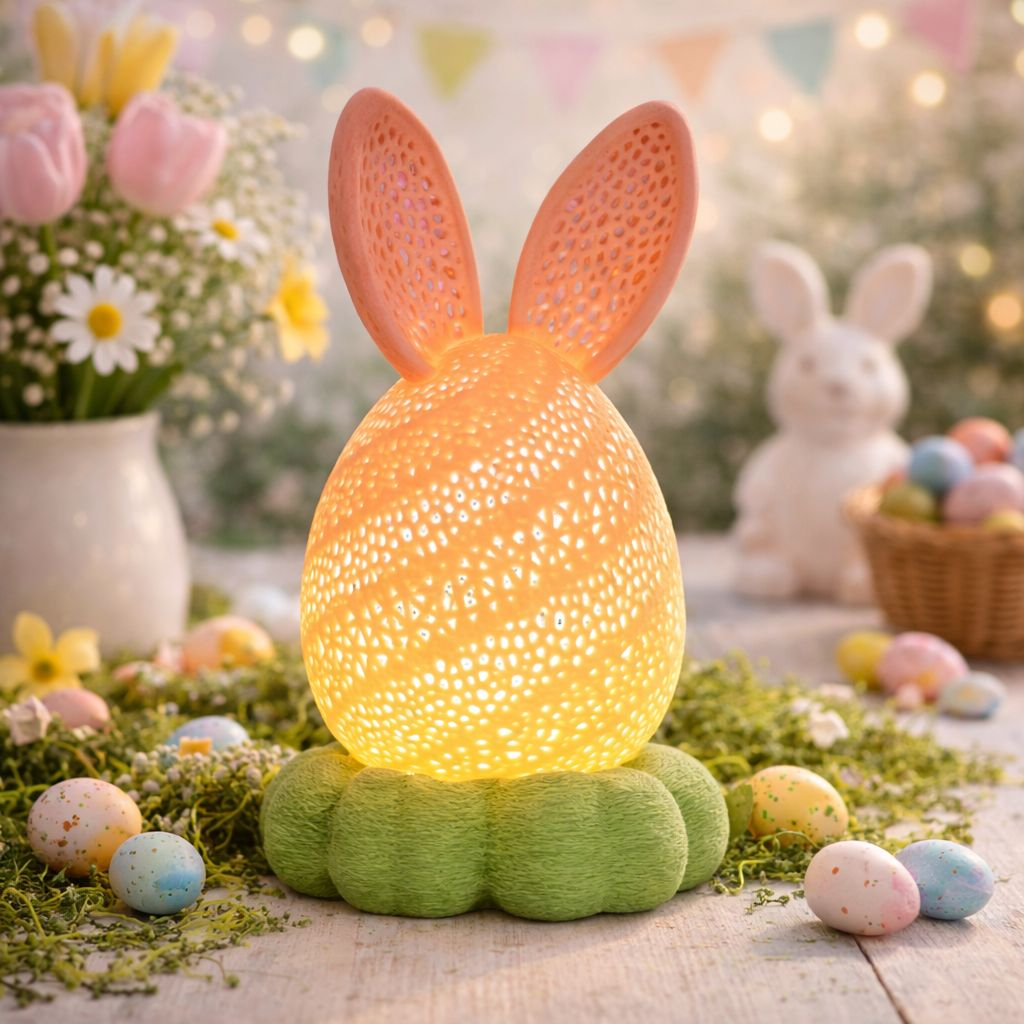 Adauga un strop de magie decorului de Paste cu aceasta lampa decorativa in forma de iepuras, realizata prin imprimare 3D si conceputa pentru a crea o atmosfera calda si placuta in casa ta.