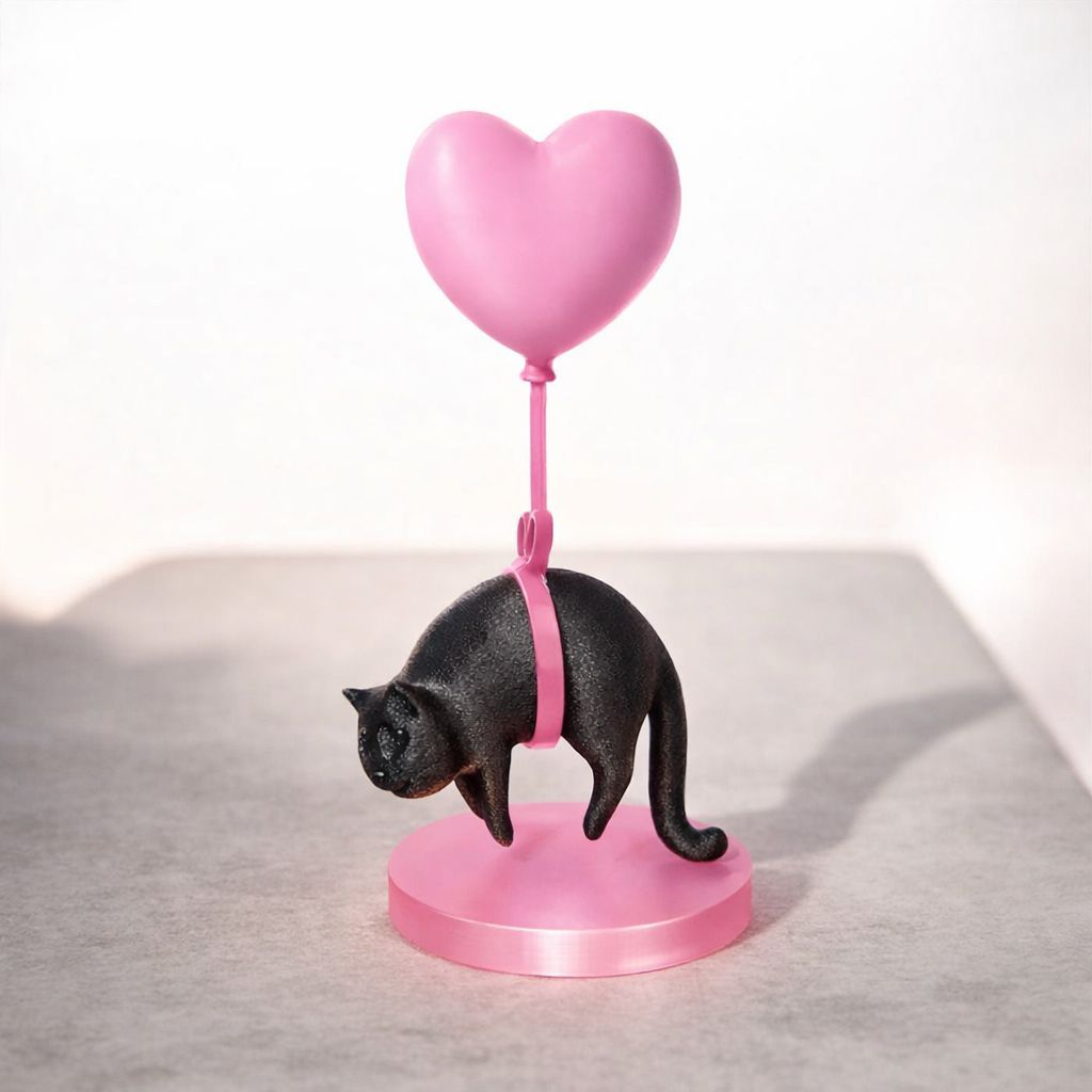 Un decor original si plin de personalitate, perfect pentru a adauga o nota jucausa si romantica oricarui spatiu. Figurina reprezinta o pisica neagra suspendata de un balon in forma de inima roz, creand un efect vizual surprinzator si plin de umor.