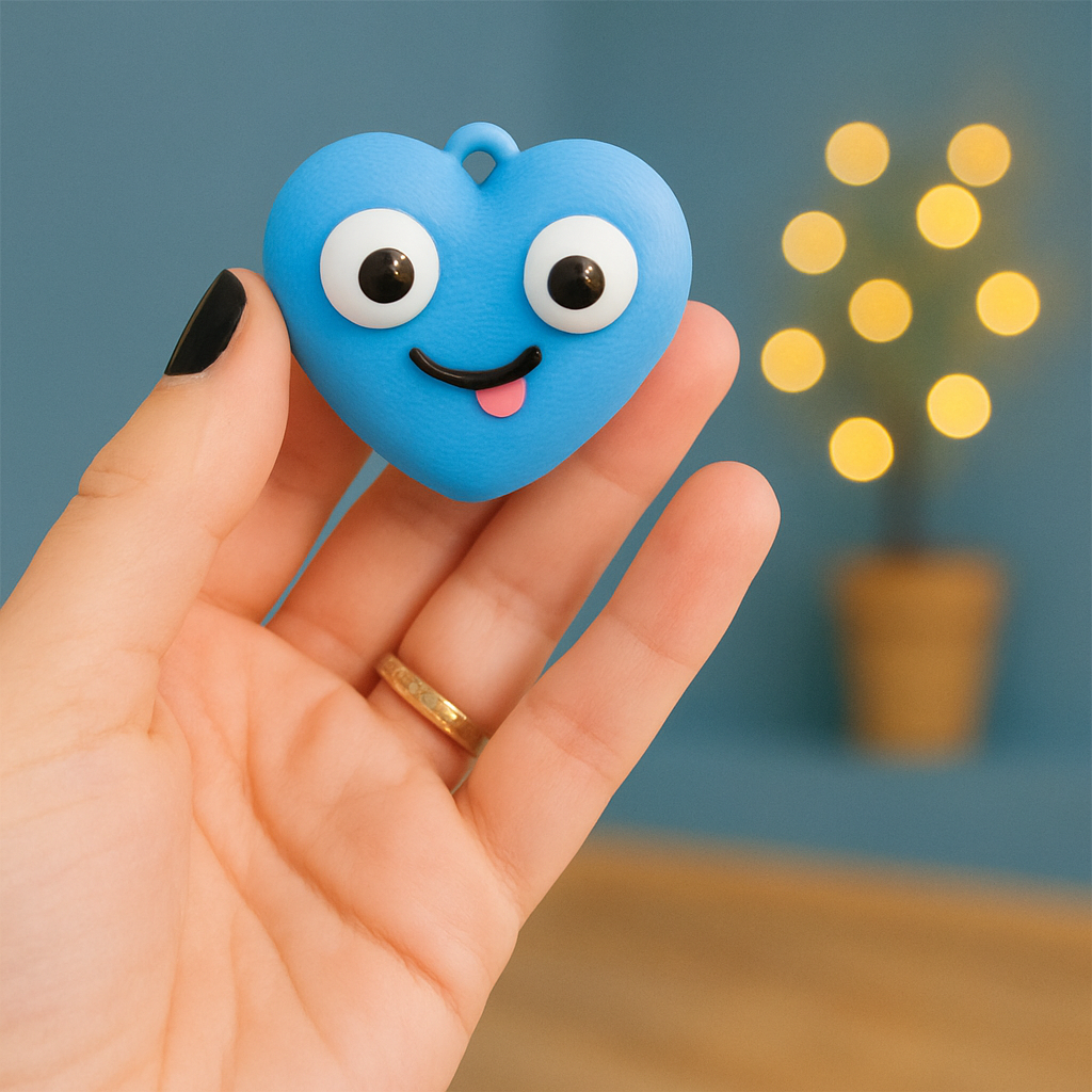 Happy Heart este un breloc adorabil imprimat 3D, în formă de inimioară cu ochi mari rotitori și o limbuță haioasă. Designul simpatic și expresiv îl face perfect ca accesoriu de chei, decor de ghiozdan sau cadou pentru cineva drag.