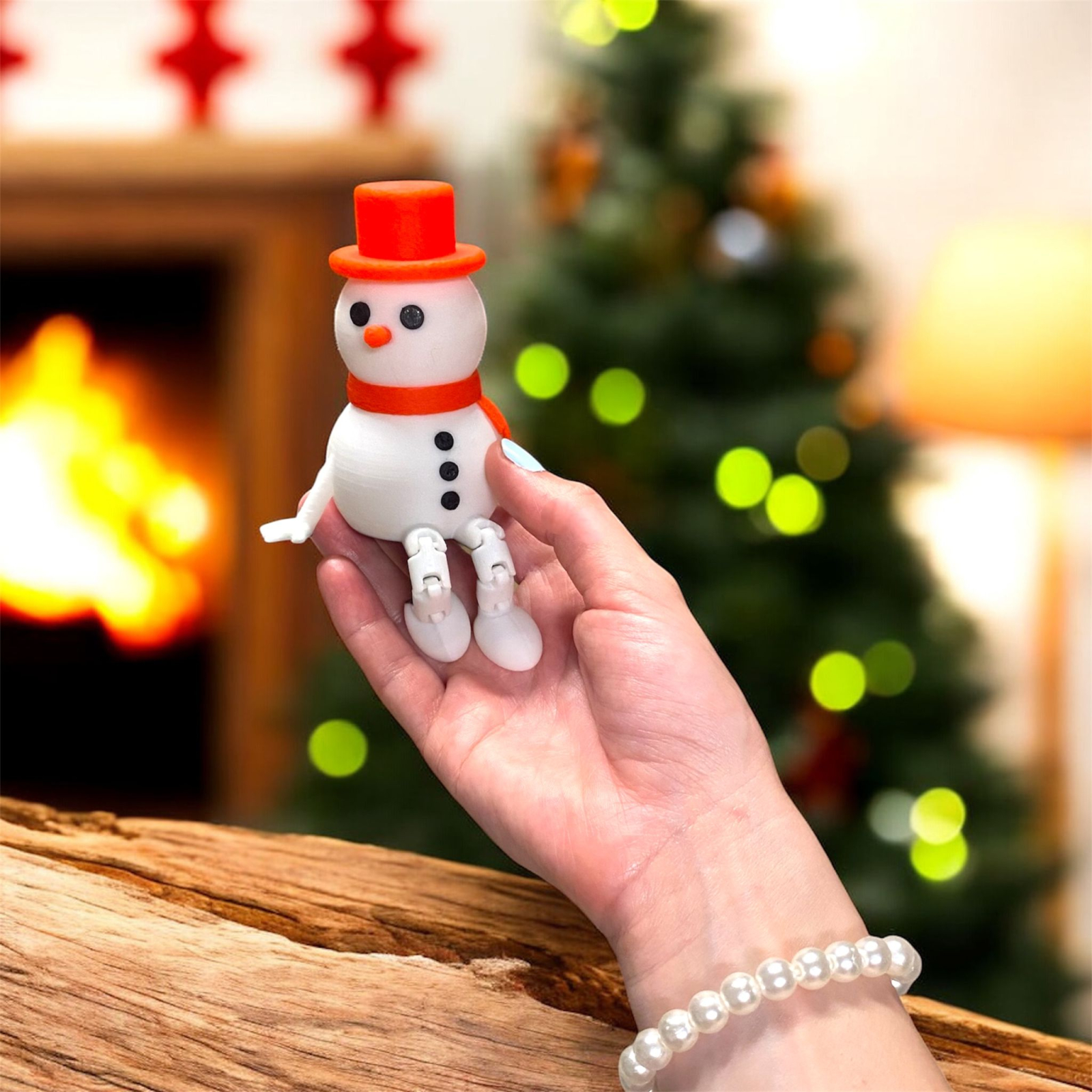 Omulețul de zăpadă articulat de la Alore Magic 3D Print este o figurină adorabilă, cu membre mobile, creată special pentru decorul de iarnă. Îl poți așeza în diverse poziții – stând, sprijinit sau relaxat – fiind perfect pentru rafturi, brad, mese festive sau fotografii de Crăciun.