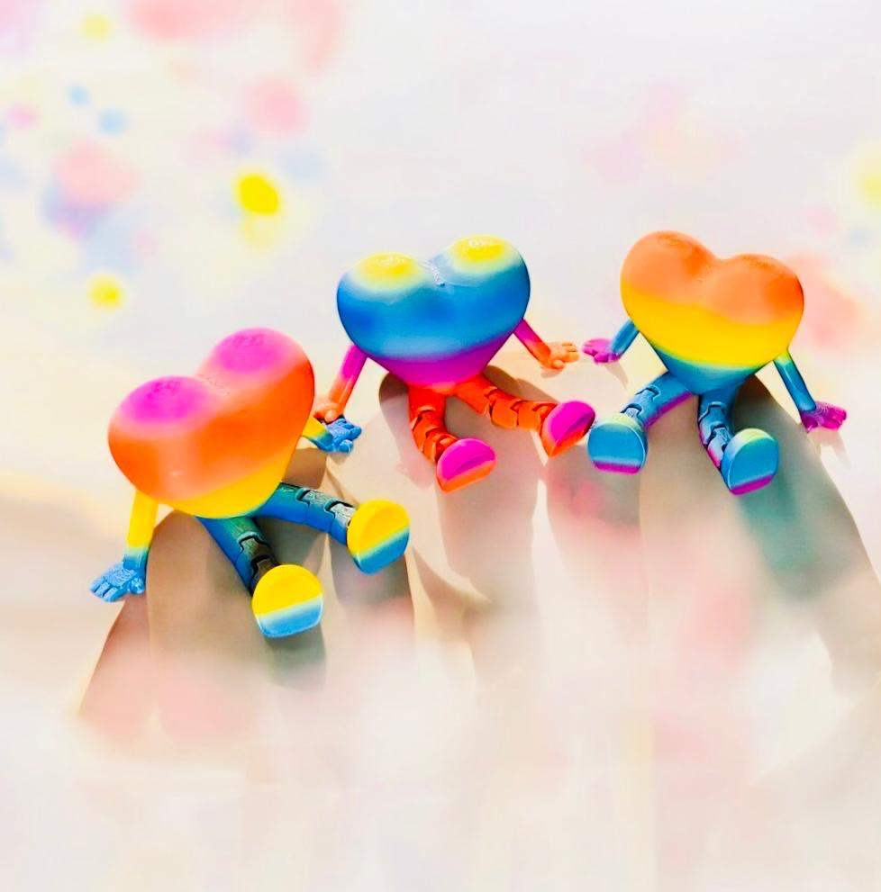 Un personaj adorabil în formă de inimă, cu picioare flexibile, gata să aducă zâmbete oriunde merge! Ideal ca jucărie decorativă, piesă antistres sau cadou de suflet.